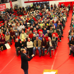 Senator Ron Wyden responded to questions concerning the Dakota Access Pipeline and climate change from a crowd that packed the Ashland High School gymnasium on at his annual…